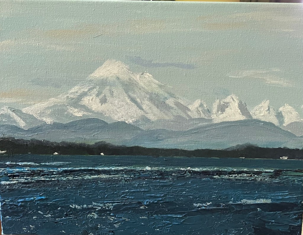 Our daughter and her husband love Mount Baker in Washington State. it can be seen from several places along the shore of Victoria. THIs painting was gifted to them.
