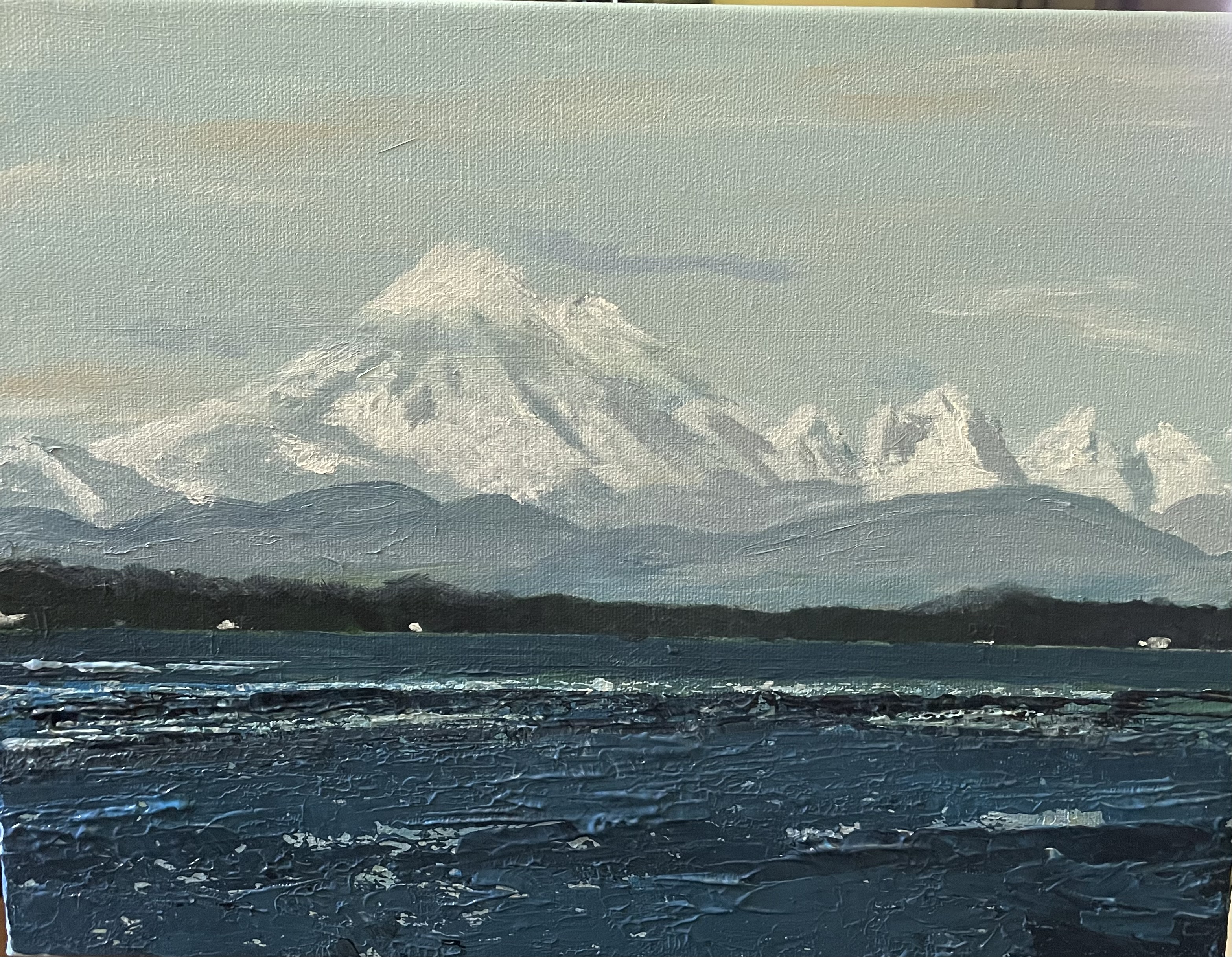 Our daughter and her husband love Mount Baker in Washington State. it can be seen from several places along the shore of Victoria. THIs painting was gifted to them.